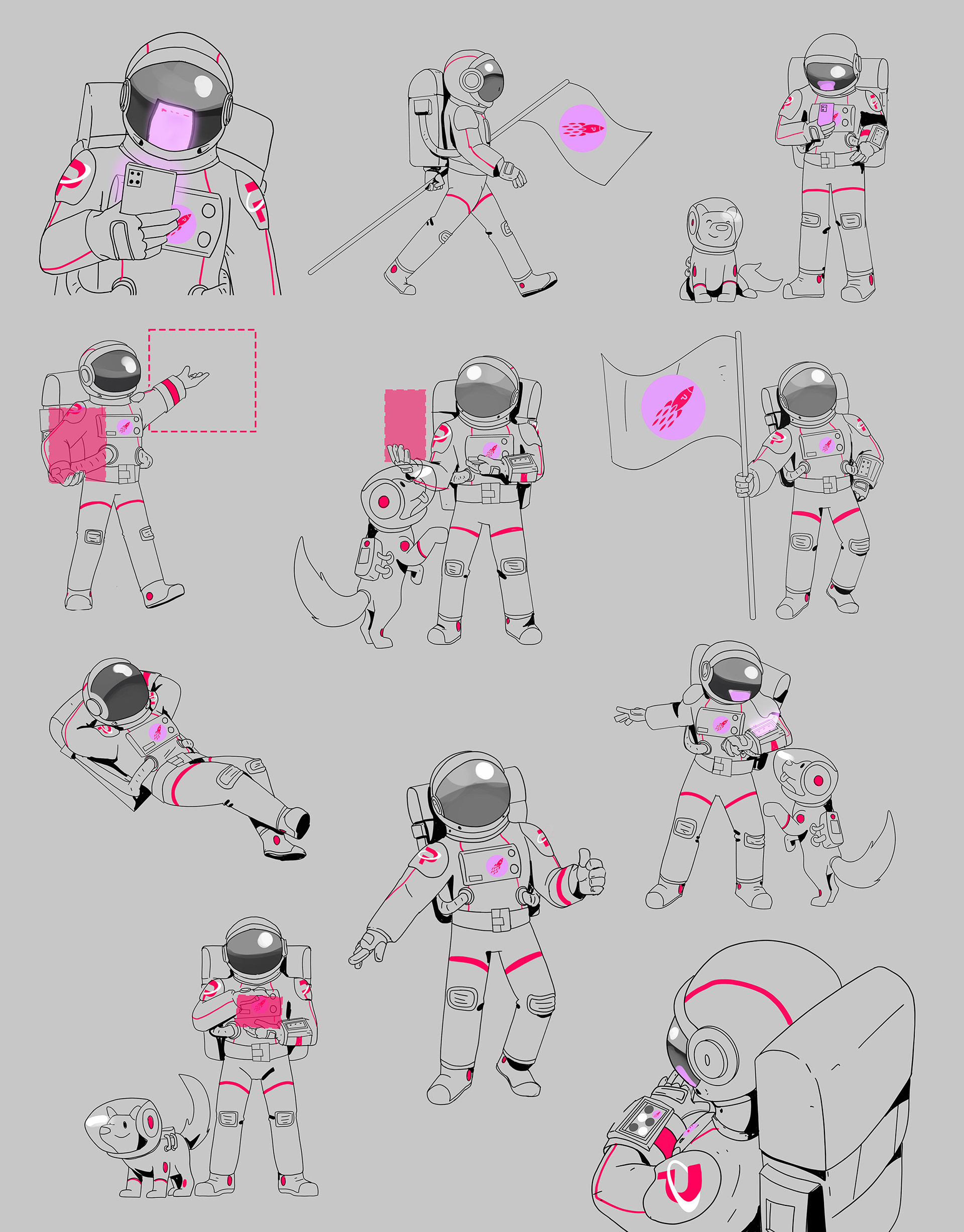 Design and development of characters for a virtual market app.